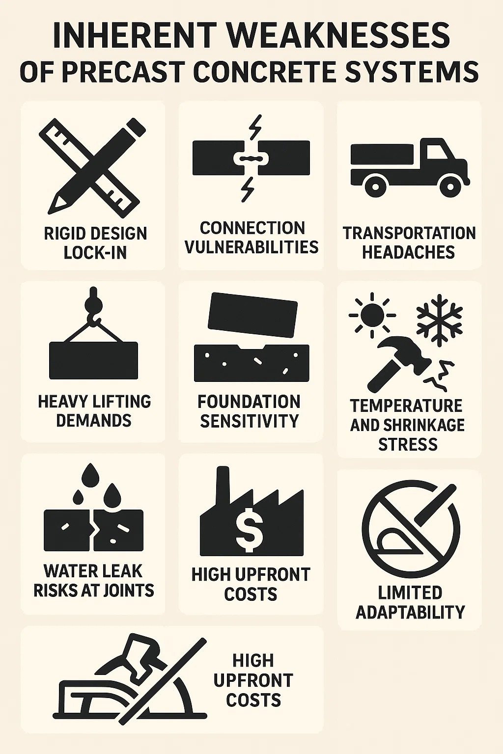 Här är de inneboende svagheterna prefabricerade betongsystem :