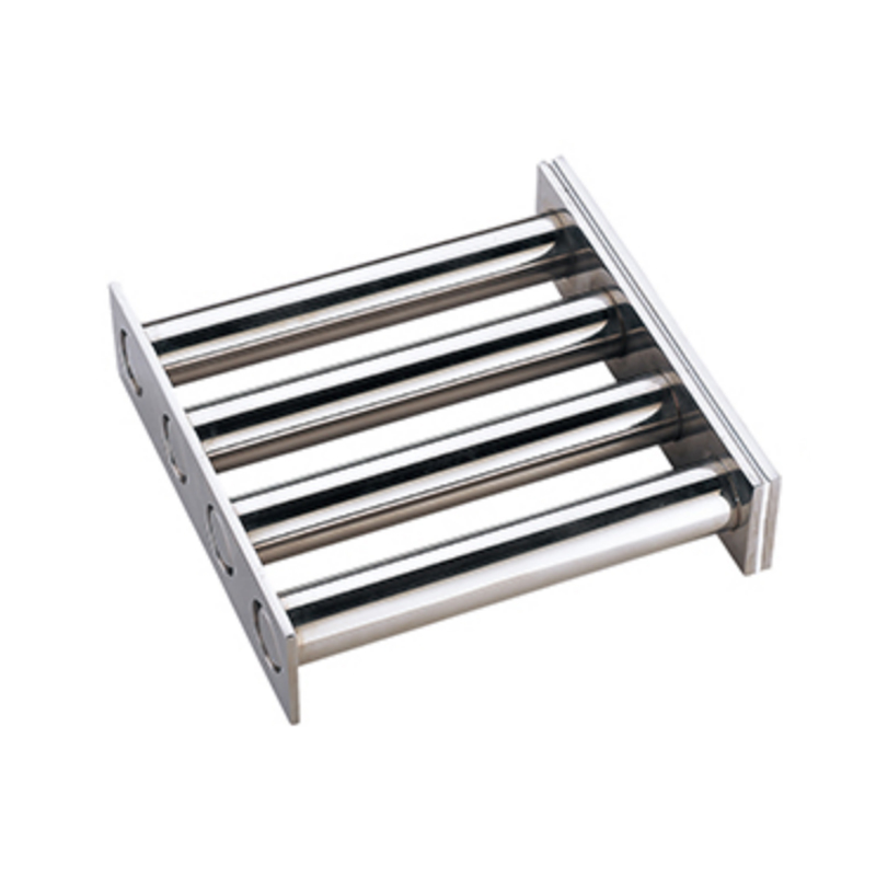Magnetiska galler i rostfritt stål används för att ta bort magnetiska material från produkter i olika branscher inklusive livsmedelsbearbetning, läkemedel, kemikalier och gruvdrift. Rostfritt stålröret eller ramen förhindrar direkt kontakt av magneten med produkten, vilket säkerställer att fångade föroreningar säkert behålls före rengöringsprocessen. Rostfritt stål magnetiska galler är strategiskt placerade i bearbetningslinjer eller rörledningar. När produkten rinner genom nätet lockar och behåller magnetfältet järnföroreningar, vilket hindrar dem från att förorena slutprodukten.